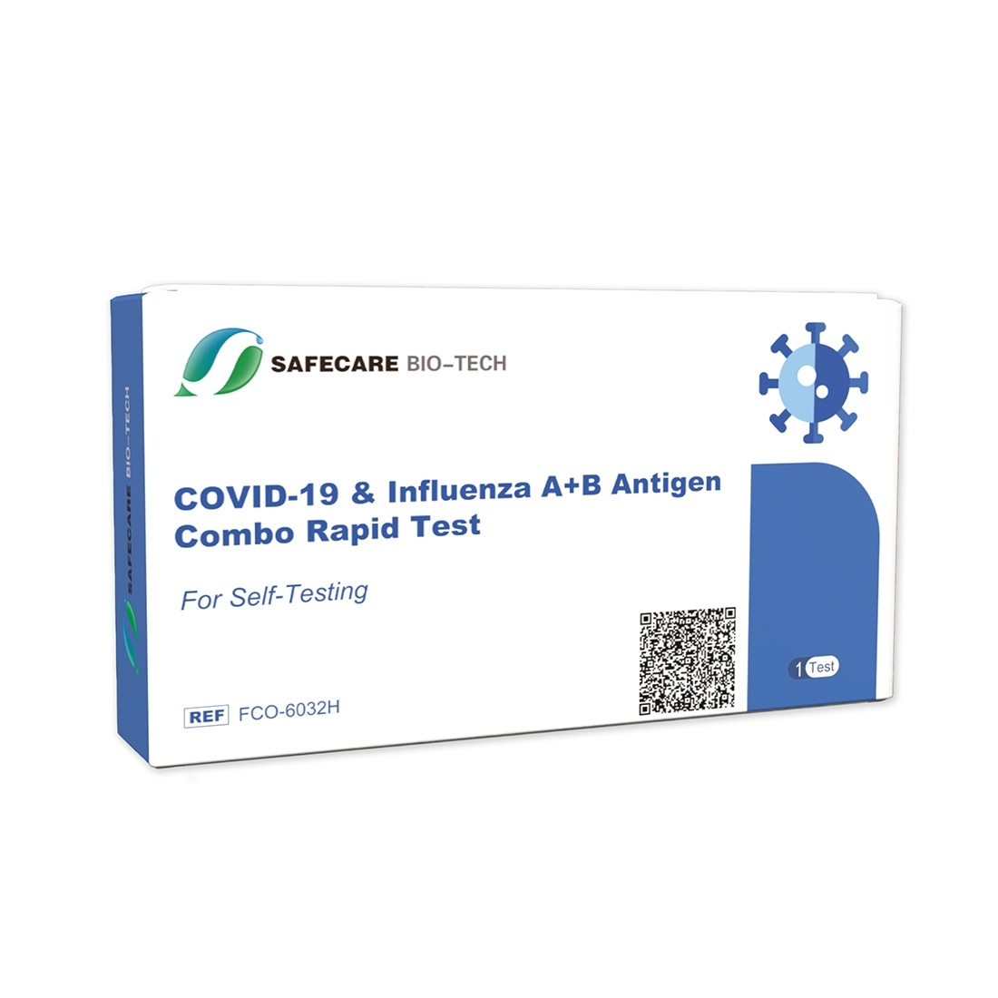 Le Kit Auto-test Antigénique Covid 19 / Grippe de marque SAFE CARE permet de réaliser, chez soi, un test immunochromatographique et d’avoir un résultat en 15 minutes.