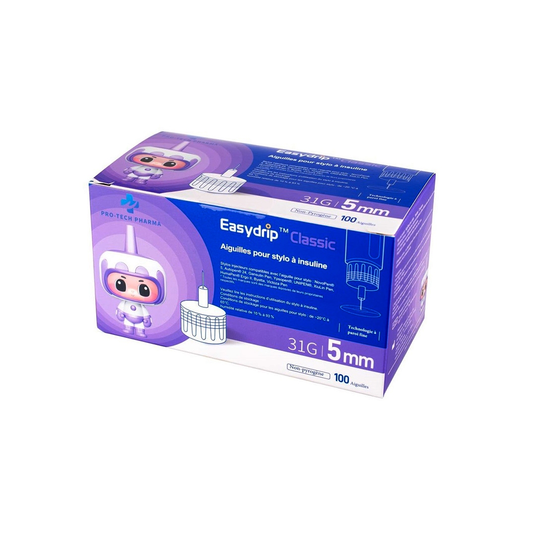 - Technologie EasyDrip / paroi extra-fine : favorise un meilleur débit d’insuline et réduit la pression nécessaire lors de l’injection