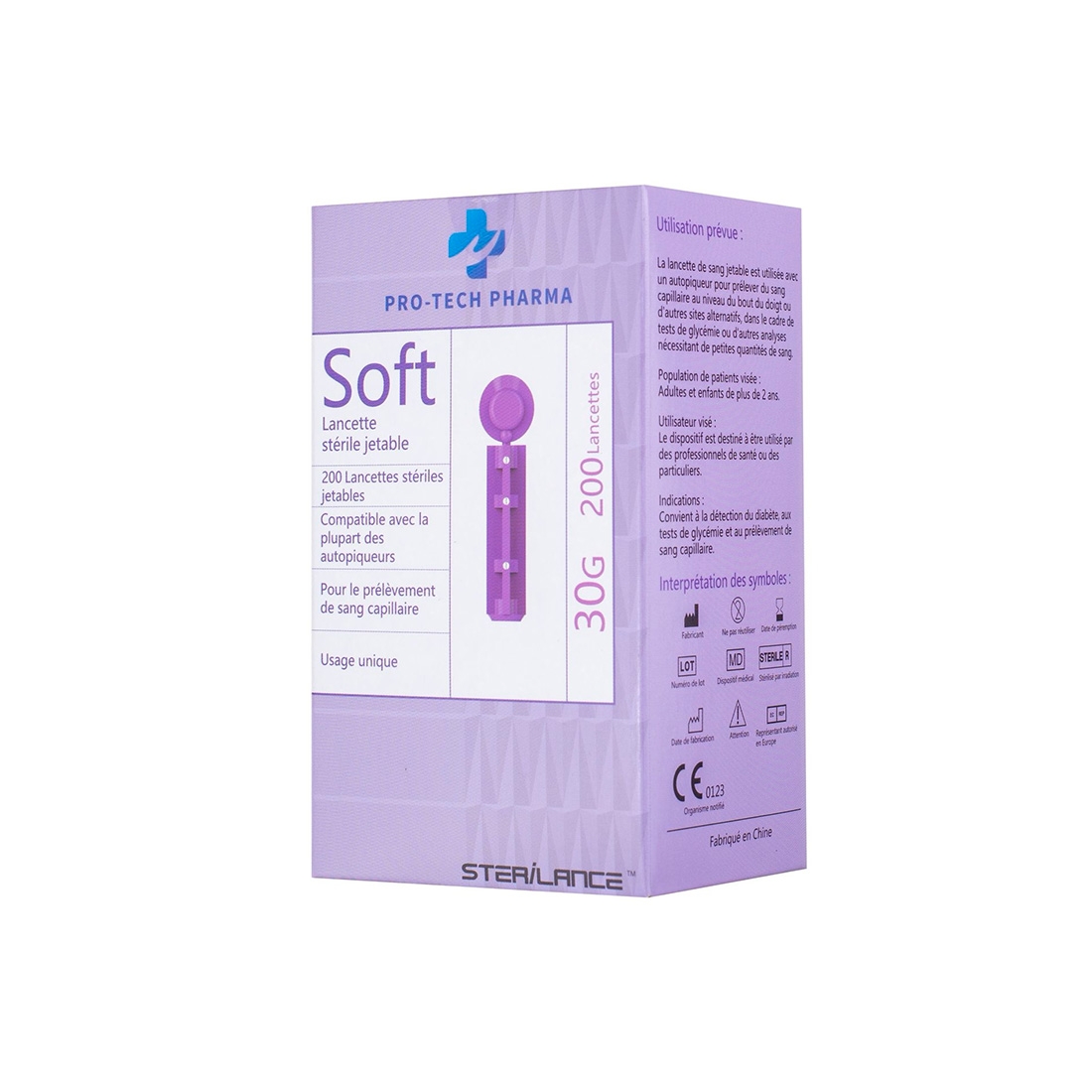 Les lancettes Sterilance Soft 30G sont des dispositifs médicaux stériles conçus pour le prélèvement de sang capillaire lors du contrôle de la glycémie. Grâce à leur aiguille ultra-fine et à leur pointe spécialement affûtée, elles permettent un prélèvement rapide, précis et confortable pour les patients diabétiques.