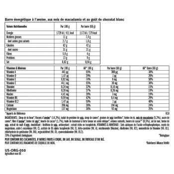 Barre energetique Clif Bar gout chocolat blanc et noix de macadamia - 68 grammes