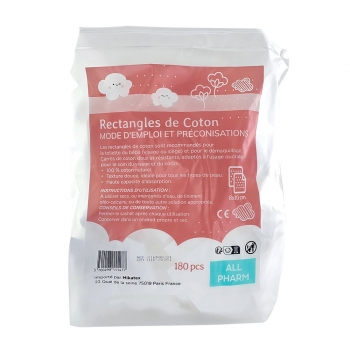 Les rectangles de coton sont recommandés pour la toilette du bébé (visage ou siège) et pour le démaquillage.